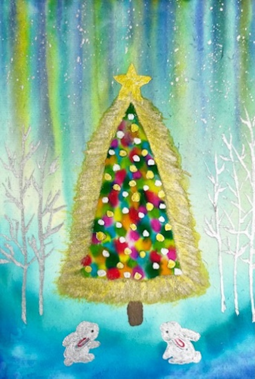 ツリーを見上げるウサギ達